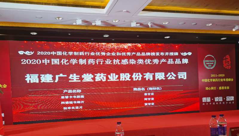 廣生堂3大產品獲評“2020中國化學制藥行業(yè)抗感染類優(yōu)秀產品品牌”