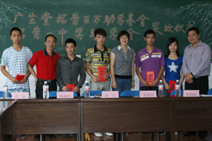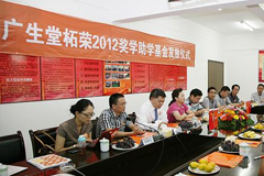 2012年8月22日,“廣生堂柘榮獎學助學基金”在福建廣生堂藥業(yè)股份有限公司柘榮生產(chǎn)基地順利召開。本次獎助學活動資助的對象是柘榮一中2012屆考上大學的8名優(yōu)秀學生以及19名家庭貧困的品學兼優(yōu)的學生。